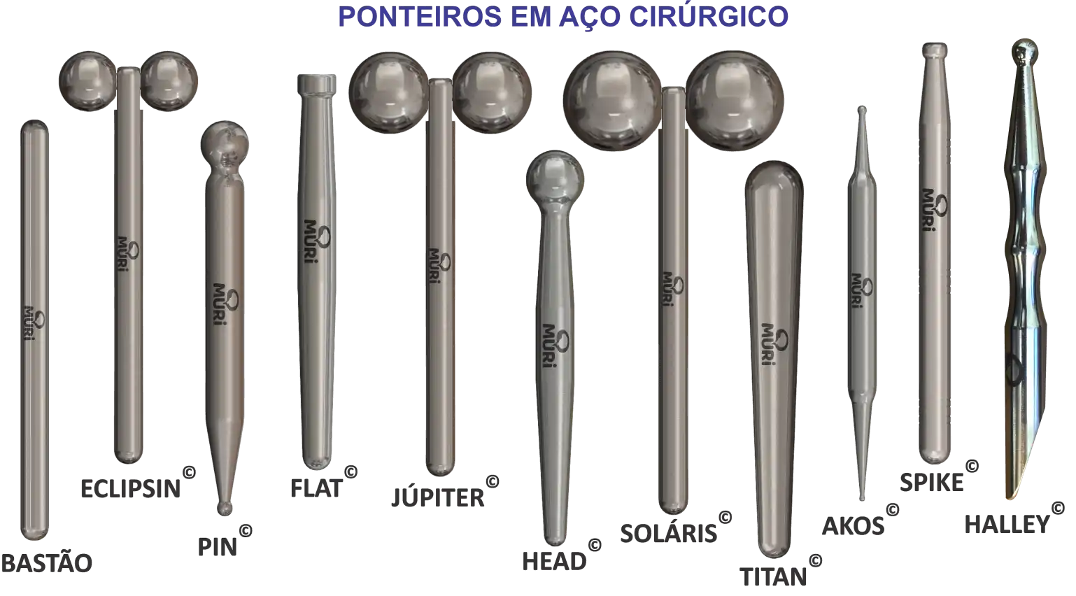 Os ponteiros MURi são feitos de aço cirúrgico inoxidável, o que garante a durabilidade de suas ferramentas.